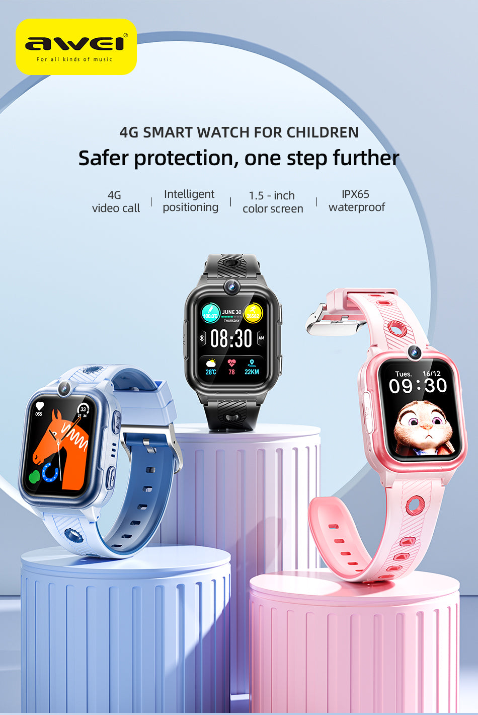 Awei H30 Kids Watch with Camera GPS Traker