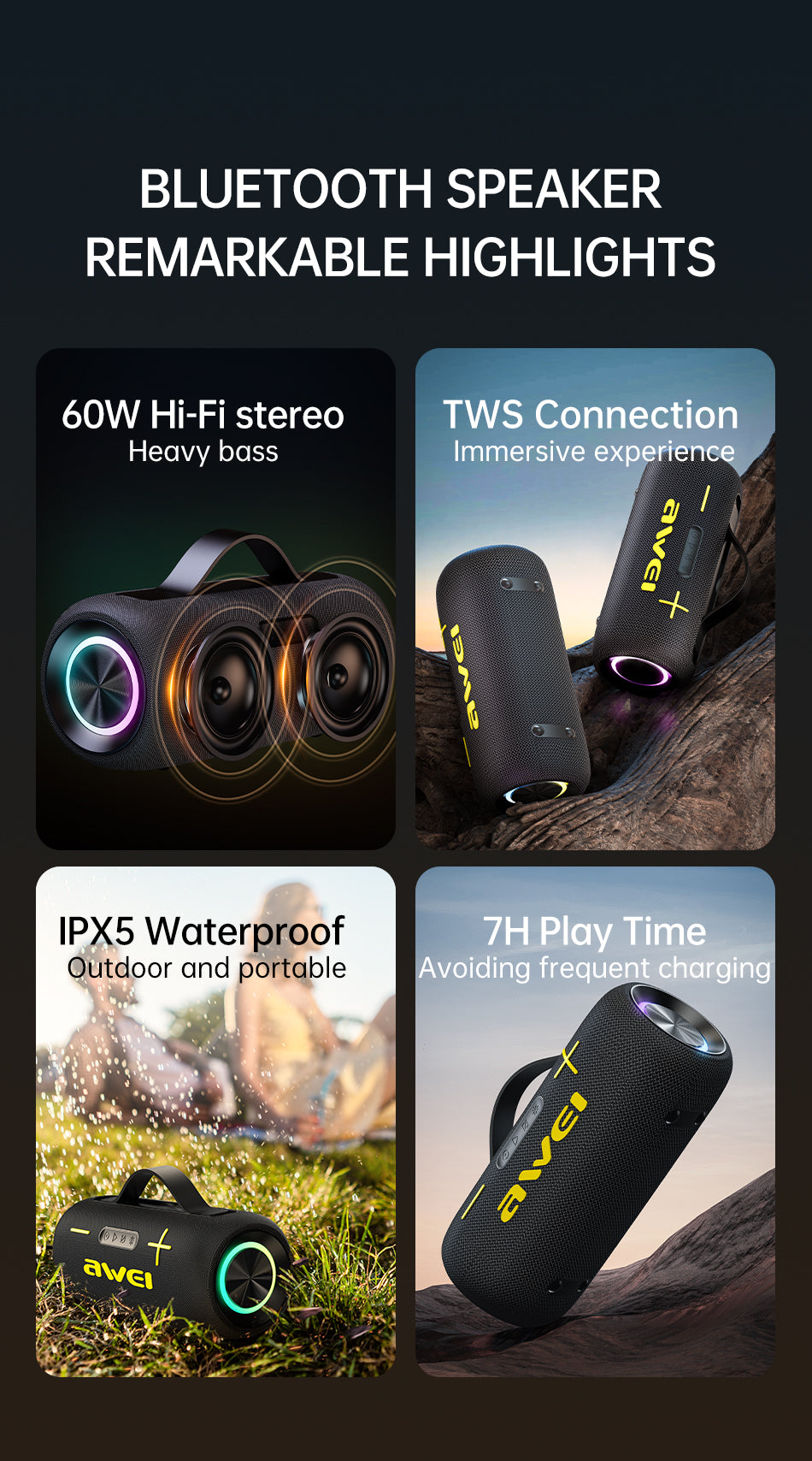 Awei KA10 Bass Lights Bluetooth Speaker Sale price$114.99 Regular price$149.00