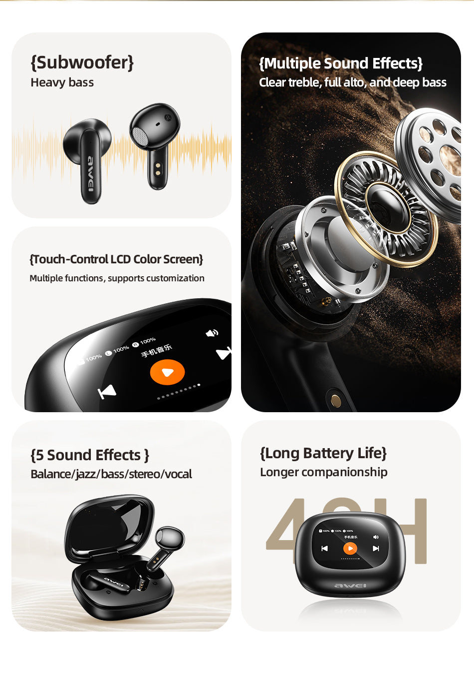 AWEI T56ANC Touch Color Screen Bluetooth Headset
