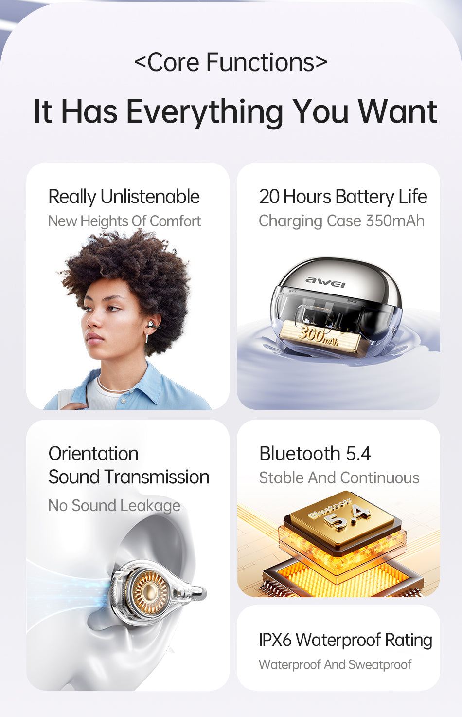 AWEI TZ50 Open Ear Clip Bluetooth Headphones