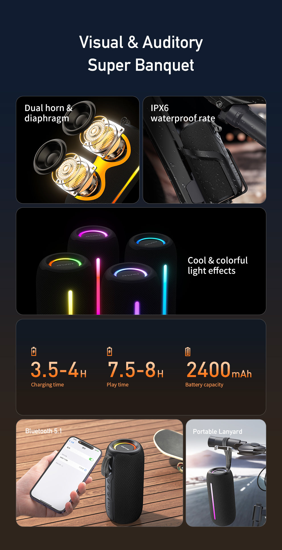 Awei KA10 Bass Lights Bluetooth Speaker